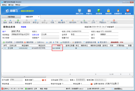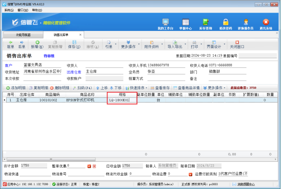 參數(shù)保存后,在功能導(dǎo)航窗點(diǎn)擊“銷售管理”—》“銷售出庫(kù)單”,新增銷售單,商品規(guī)格信息可以正常修改。如圖所示: