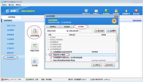 規格參與計算需要先啟用系統參數“商品規格為計量值”,如圖所示。