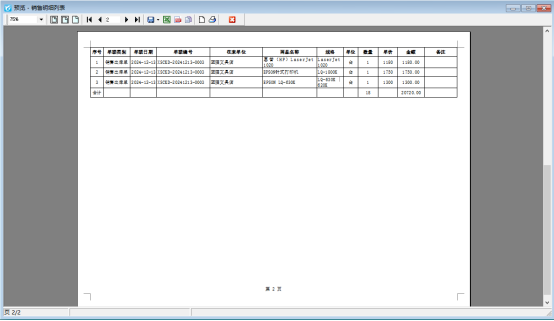 信管飛軟件支持自定義打印模板打印樣式,軟件內置的有多種打印模板,在統計單據時可以設置根據某一項數據分組統計,本文介紹打印模板如何設置分組打? 以銷售單明細查詢界面為例,按照往來單位設置分組顯示打印銷售明細,未設置時打印預覽如下顯示: 在銷售單明細查詢界