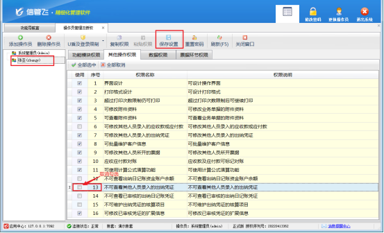信管飛出納記賬軟件是一款集現(xiàn)金/銀行日記賬、應(yīng)收應(yīng)付款管理、工資管理、發(fā)票管理等為一體的綜合性財務(wù)出納管理軟件,有用戶在使用軟件時,系統(tǒng)管理員賬號登錄軟件可以看到日記賬憑證,但是操作員賬號登錄軟件確無法查看憑證,如下圖所示。 出現(xiàn)以上問題的原因是:操作員賬號沒有查看其他人員錄入的出納憑證的權(quán)限。&nb