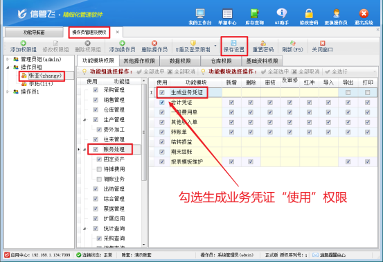 信管飛RMS專業版包含財務處理模塊,支持用戶高效、準確地登記會計憑證,為企業的財務管理提供堅實的數據基礎。在實際使用過程中,部分用戶反饋,當使用操作賬號登錄軟件進行賬務處理時,界面中未顯示生成業務憑證模塊,而系統管理員賬號登錄后該模塊卻能正常顯示,這是因為操作員沒有生成業務憑證權限導致的,本篇文章介紹下如何解決?