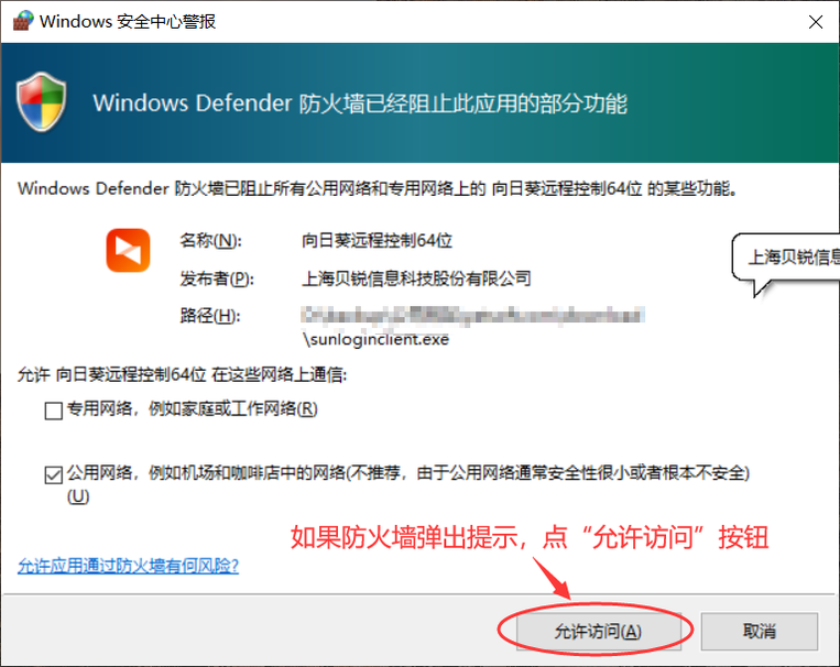 如果Windows防火墻彈出提示,點(diǎn)“允許訪問”按鈕即可,如下圖所示: